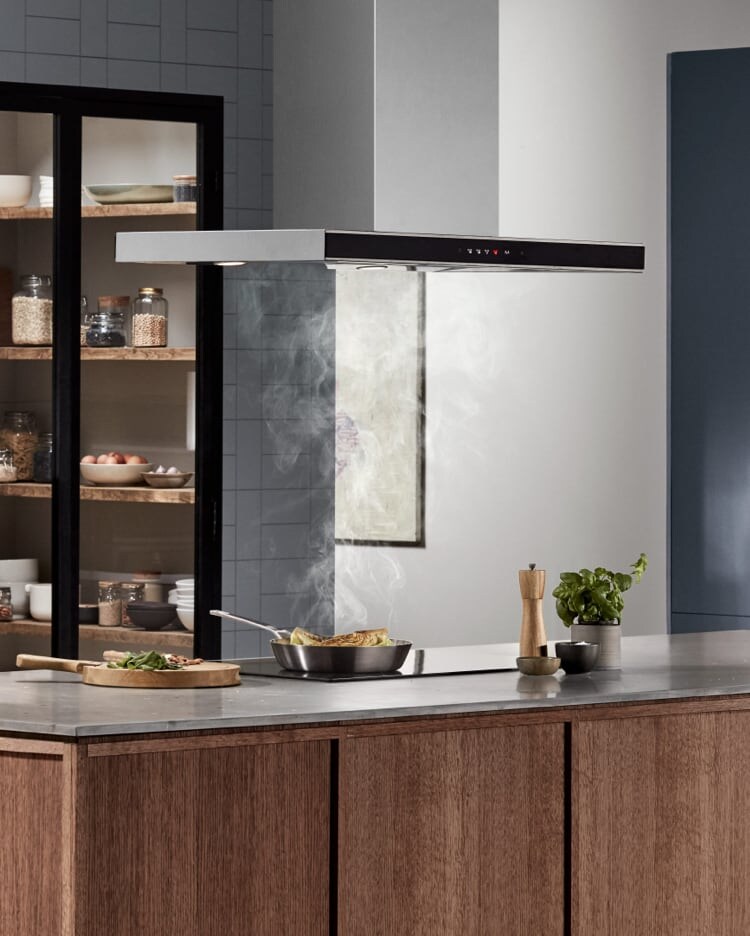 - Ako je kuhinjski aspirator iste širine kao i ploča za kuvanje, preporučuje se ivična ekstrakcija.
