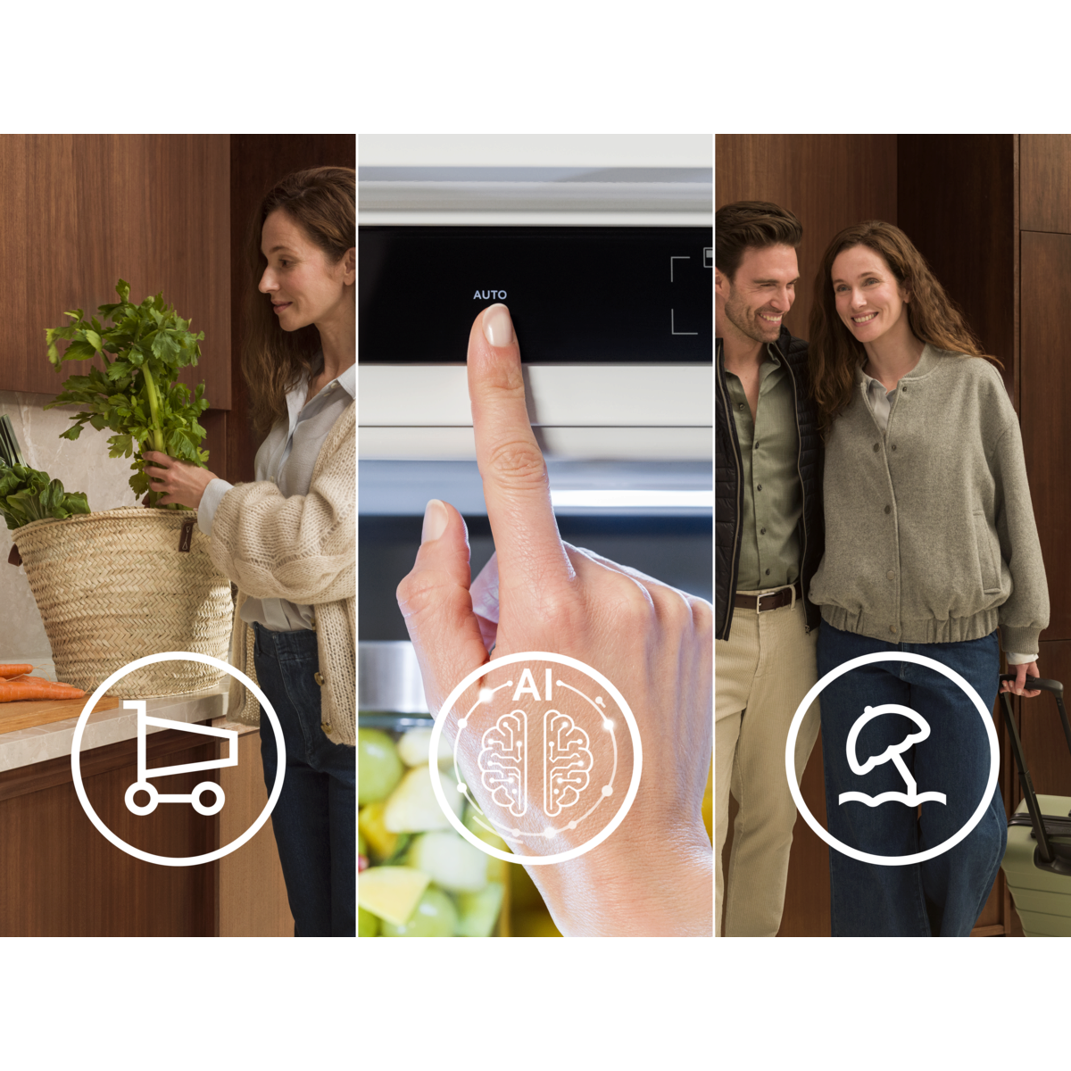 *Ispitano na 1780 CB Multichill i 1780 CB Twintech Nofrost, poređenjem potrošnje energije na 25°C u režimu Auto Vacation putem funkcije AI CoolAssist® u odnosu na fabrička podešavanja s isključenom funkcijom AI CoolAssist®. Stvarna ušteda energije zavisi od temperature okruženja i načina upotrebe.