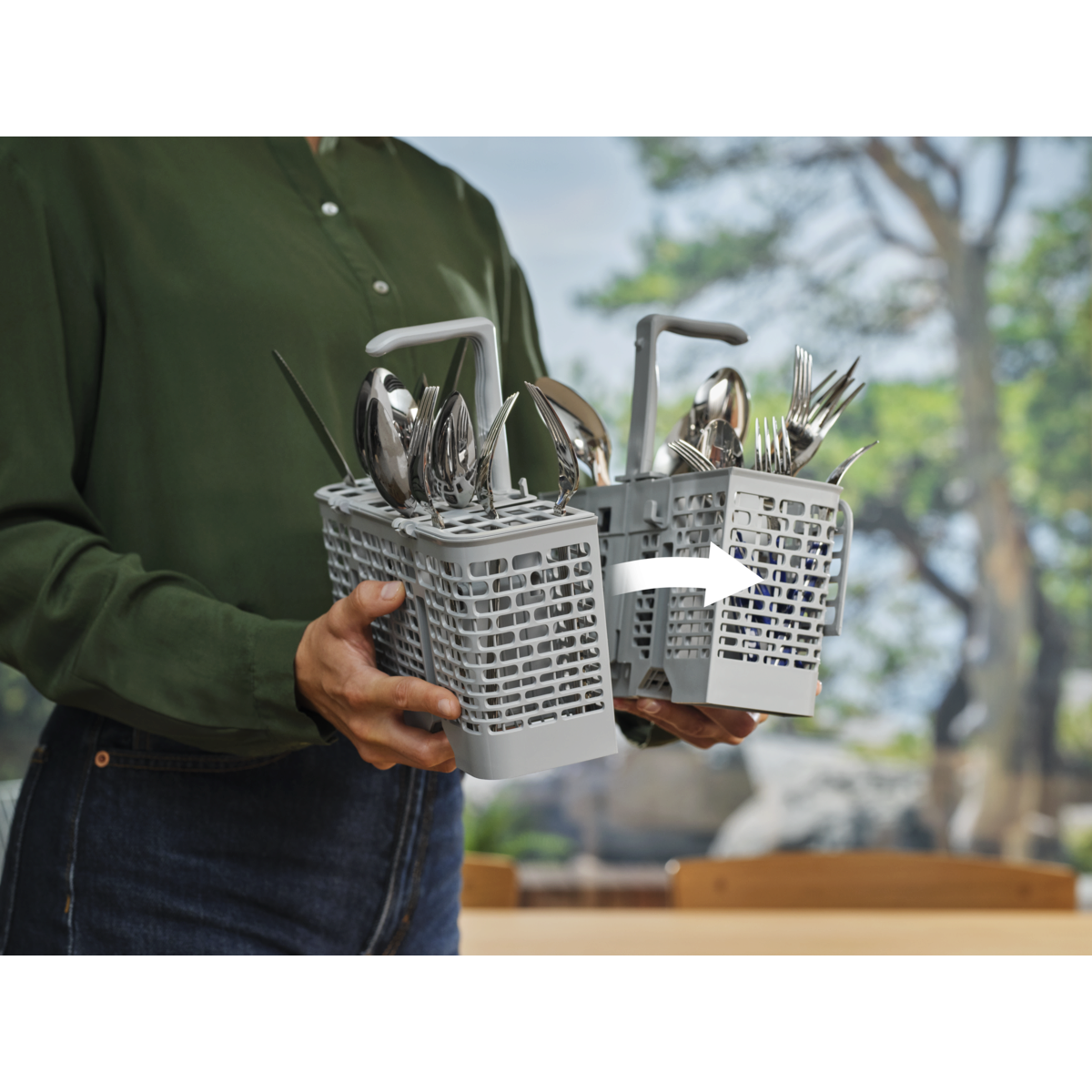800 MaxiSpace nudi 5 cm više unutrašnjeg prostora, a ipak savršeno staje pod standardnu kuhinjsku radnu ploču. Snažna moć pranja uklanja i najupornije ostatke hrane, dok fleksibilne korpe s glatkim klizanjem i držačima osiguravaju stabilnost čaša. Minimalna potrošnja vode – svega 8,4 litra.