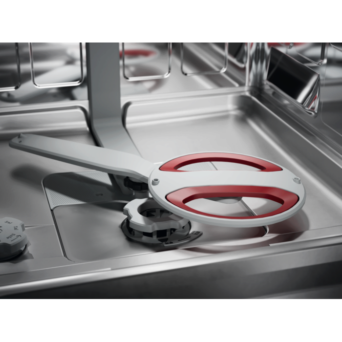 Sve rešetke se sklapaju za maksimalnu fleksibilnost, dok gumeni elementi i držači protiv klizanja u obe FlexiMax Pro korpe fiksiraju visoke čaše i ostalo stakleno posuđe sprečavajući njihovo oštećenje. U fioku za escajg mogu se smestiti žice za mućenje, kutlače i male šolje.