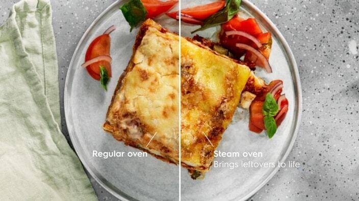 ![]() Zadržava ukus, sačuvani hranljivi sastojci Zadržava ukus, sačuvani hranljivi sastojciObrada parom nije samo stvar hrskave korice. Savršena kombinacija toplote i pare sprečava isparavanje vlage iz namirnica, zadržava ukus i maksimalno povećava teksturu mesa, ribe i lazanja, da navedemo samo neka od naših omiljenih jela.
