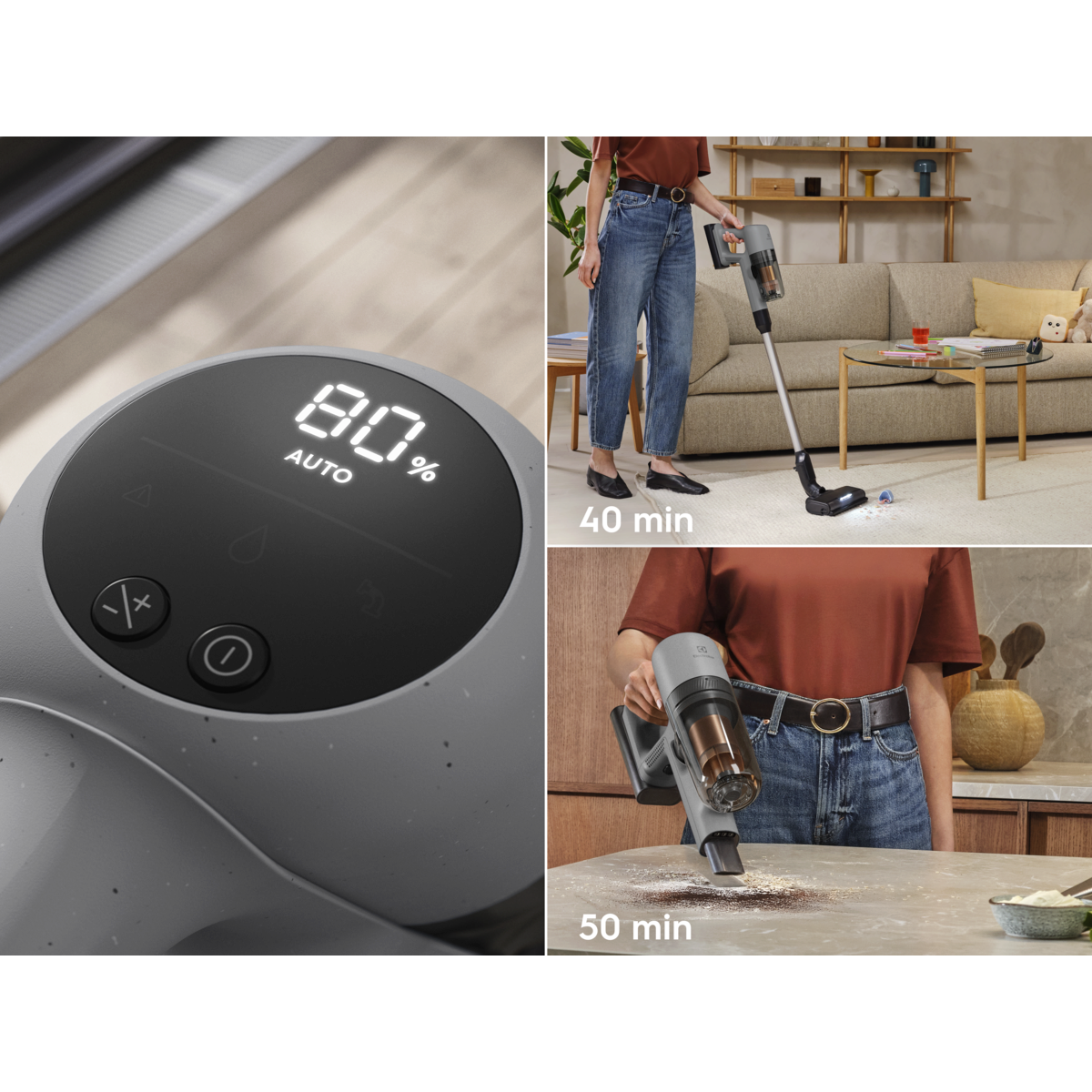 *U poređenju s Boost režimom. **Na osnovu internih ispitivanja prema IEC 62885-4 uz merenje vremena rada ručne jedinice i celog usisivača u minimalnom režimu.
